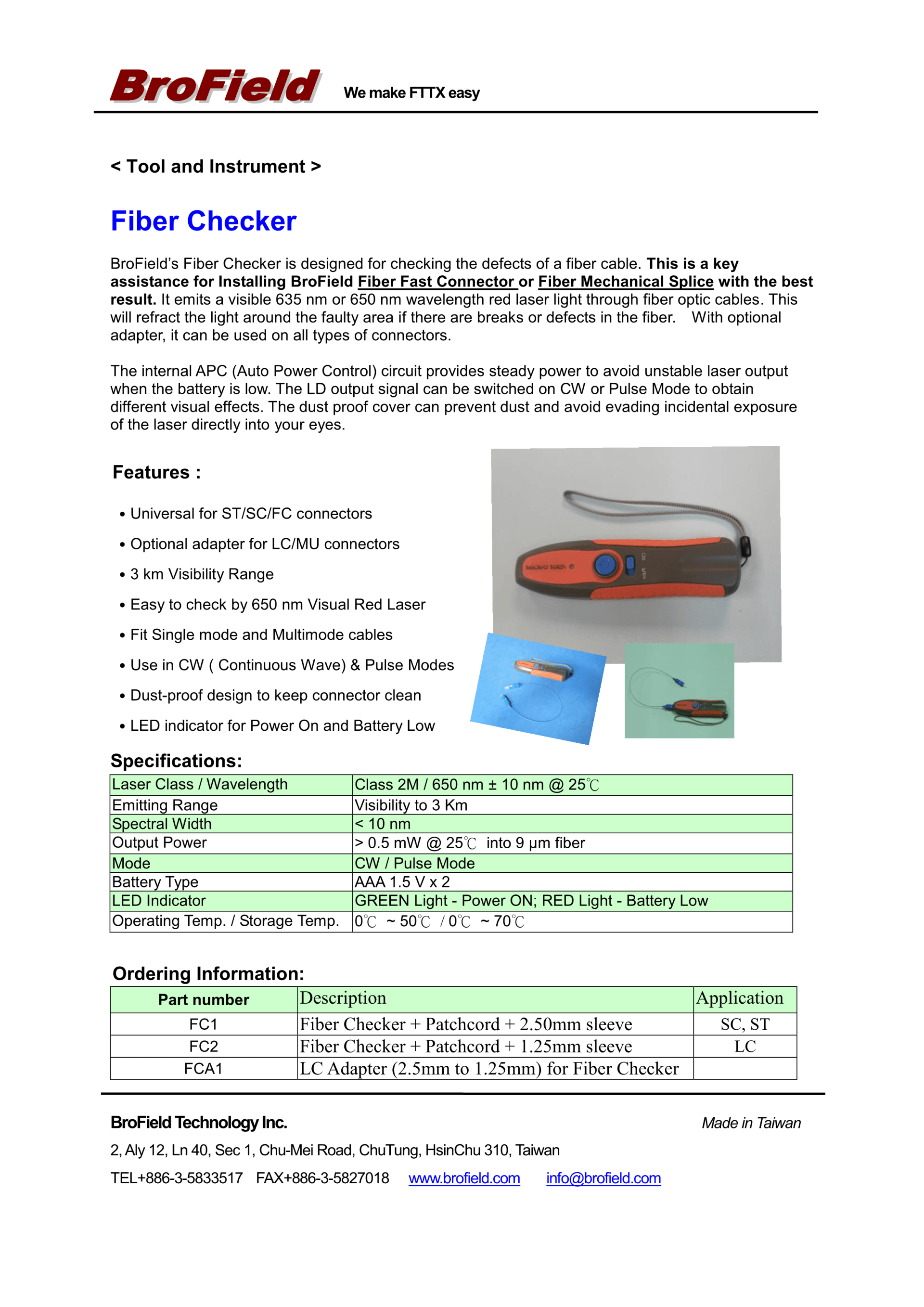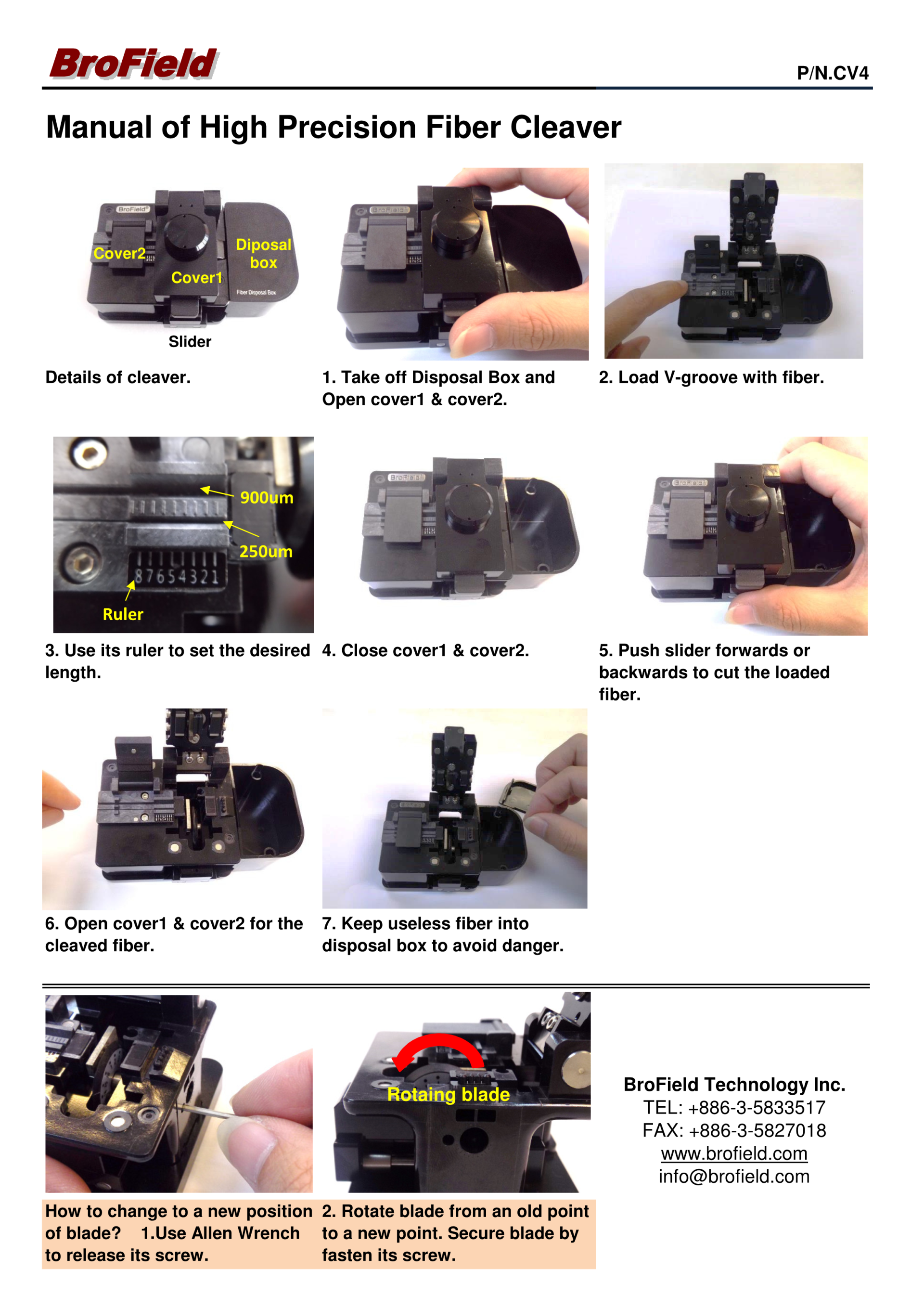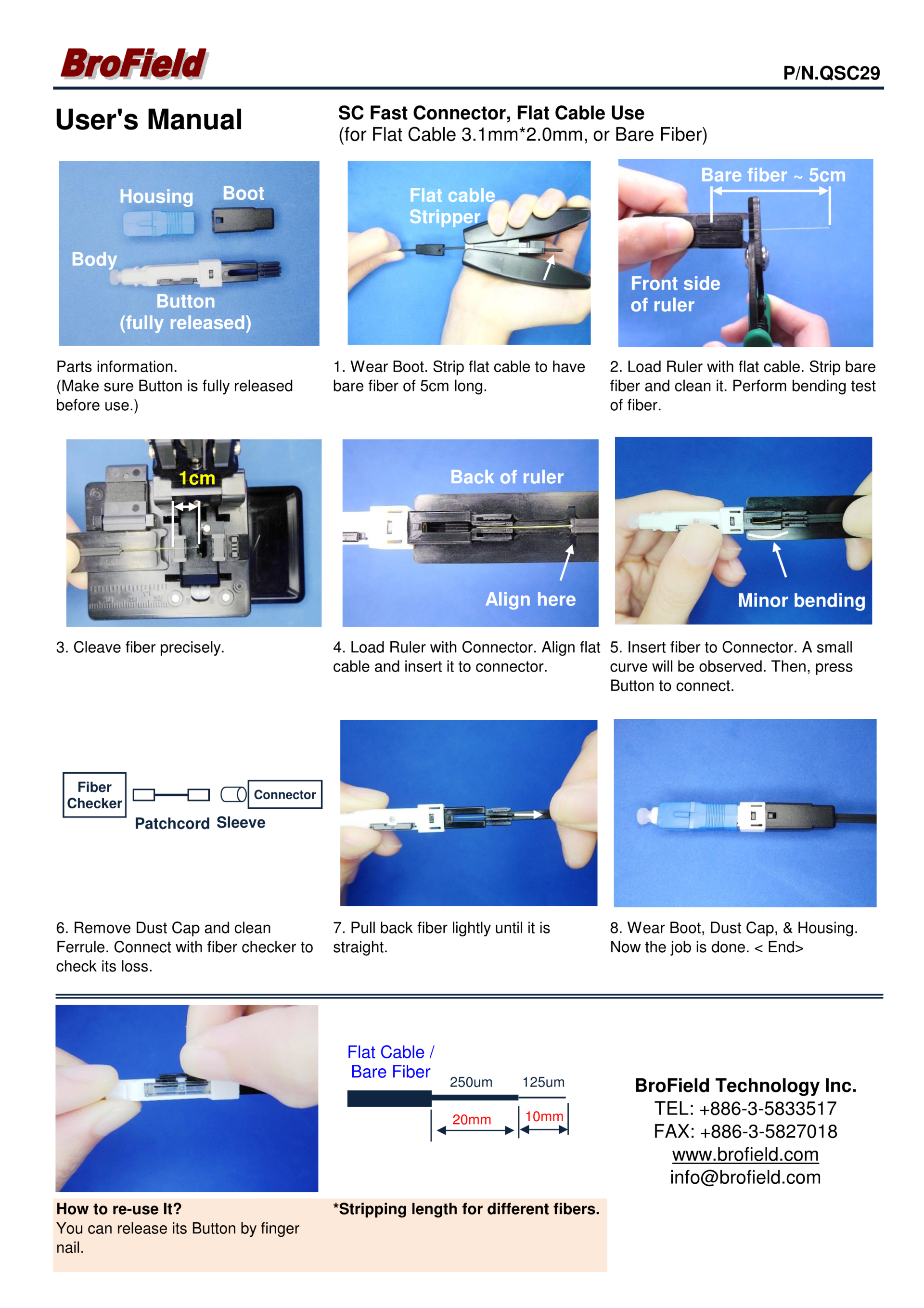 The patented BroField Fiber Fast Connector is designed to connect any fiber ranging from 250um/900um or Cables. It is a fast and easy-to-use solution for both outdoor plant and indoor installation.